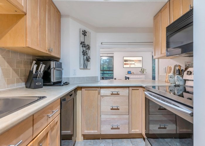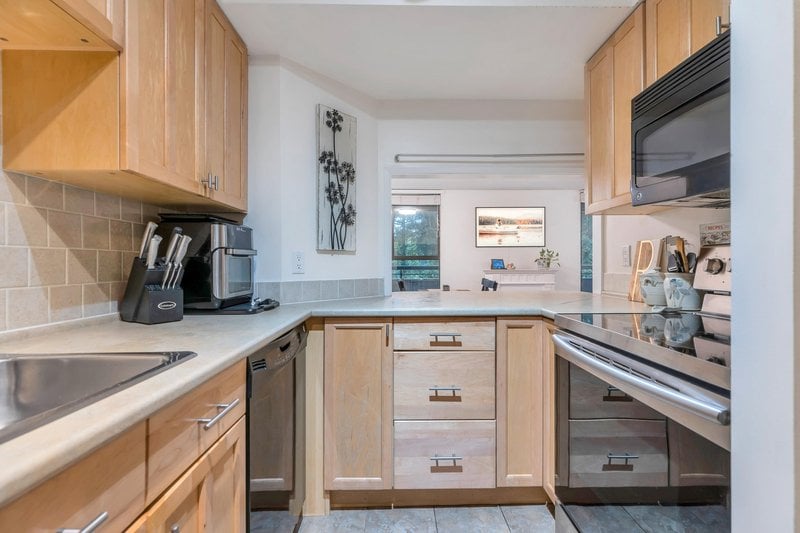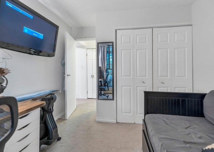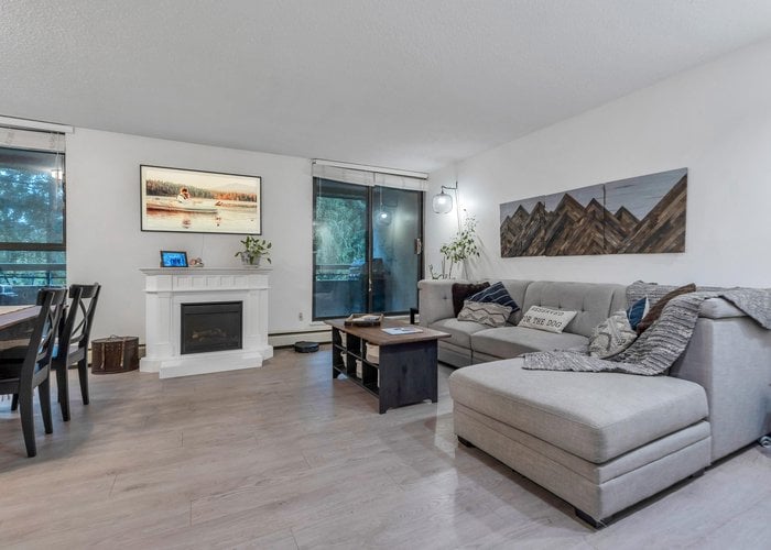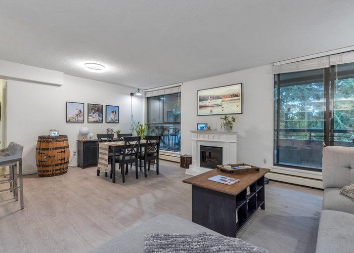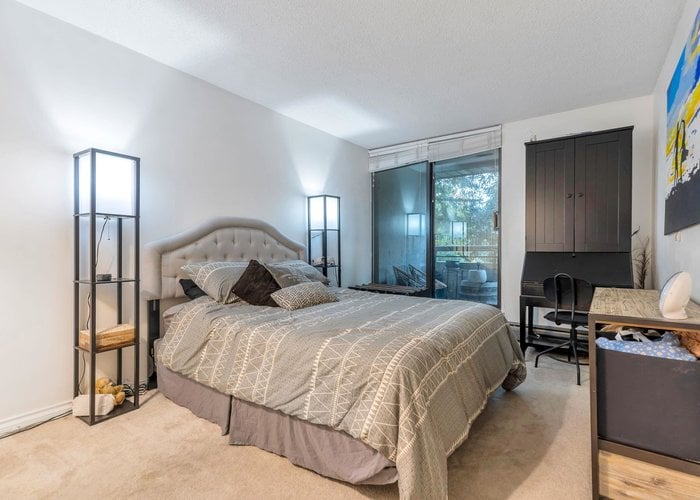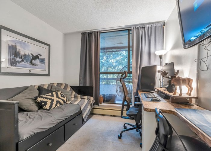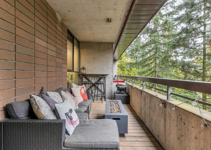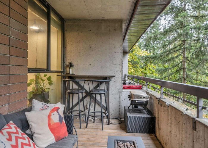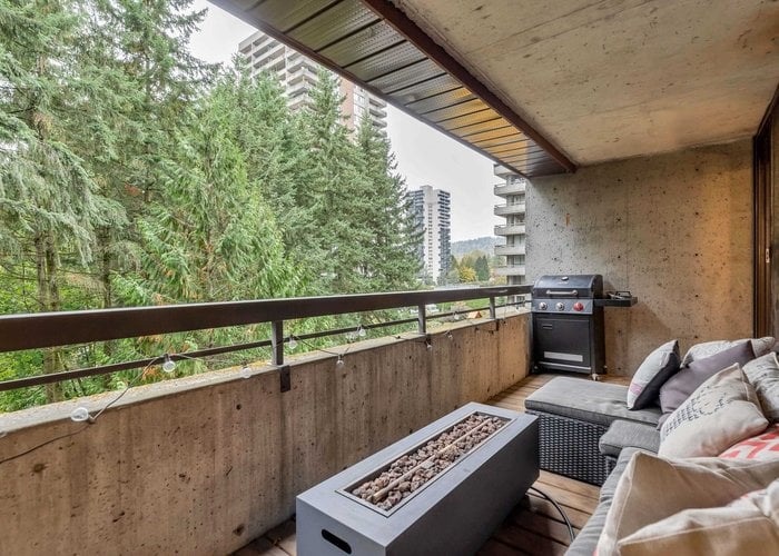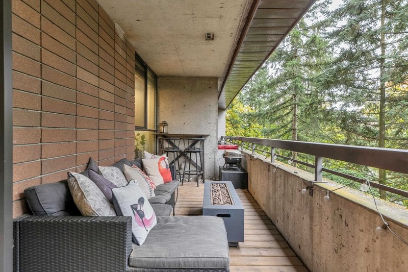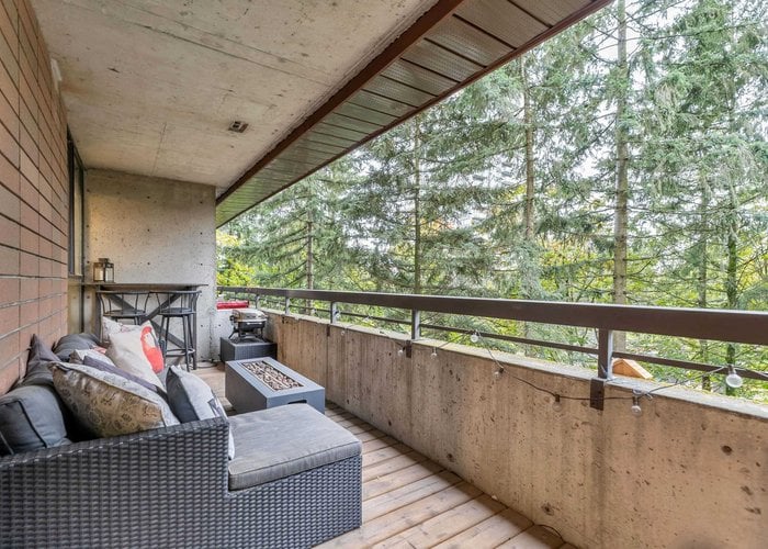 Welcome home to this renovated, bright and meticulously maintained 2 BED, 2 BATH home that features modern flooring and an updated kitchen with stainless steel appliances. Boasting a spacious open-concept dining and living space with a custom-built-in office desk and storage, ideal for working from home. The large primary bedroom includes a private ensuite, and you''ll enjoy the peaceful treed outlook from two HUGE balconies totalling 290 sq. ft. Amenities include an indoor pool, hot tub, sauna, gym, billiards room, party room, workshop, and bike room. Strata fees INCLUDE heat (natural gas), hot water, electricity and more! Steps to Lougheed Mall, SkyTrain, and parks. WINDOWS were upgraded to double pane by previous owner!