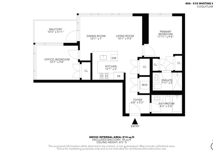 Welcome to the UNION, a boutique style high rise at the crossroads of Burnaby and West Coquitlam. This residence is ideally located for commuters, situated just one block away from the Skytrain, Hwy 1 & Lougheed Hwy. Step inside & fall in love w/ this 814 sq ft 2 bed 2 bath open concept floor plan with floor-to-ceiling windows that flood the space with natural light. Features include: gourmet kitchen, quartz countertops, gas cooktop & top-of-the-line appliances. Great bedroom separation - enjoy privacy in your ample-sized rooms, complete with a spa-like ensuite & walk-thru-closet. Amenities include a fully equipped fitness room, club house with pool table & table tennis, sky lounge for entertaining, club house and landscaped outdoor courtyard. Pets and rentals welcome. 1 parking included.