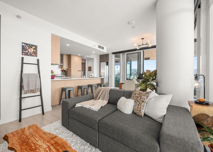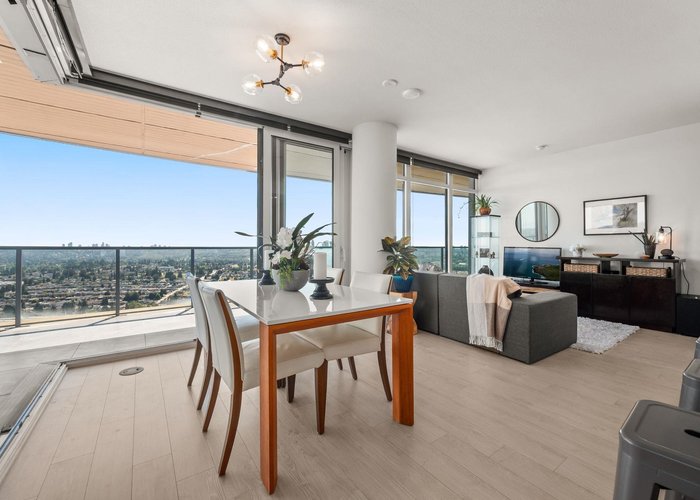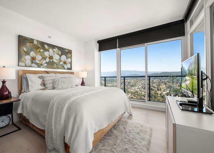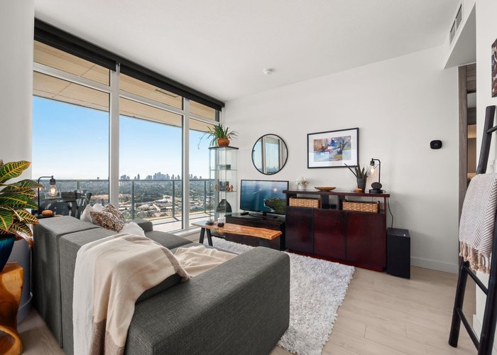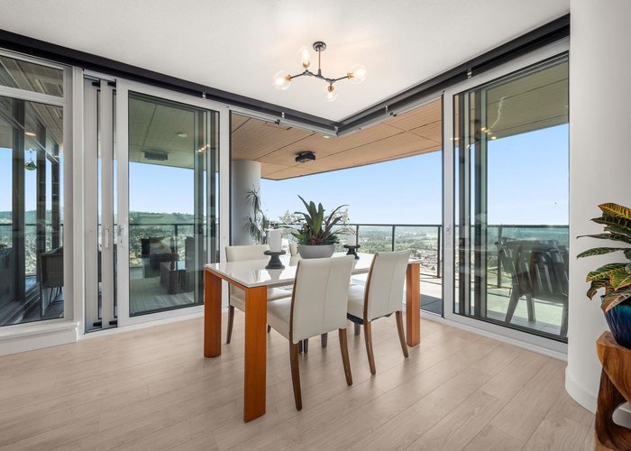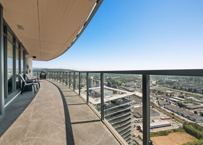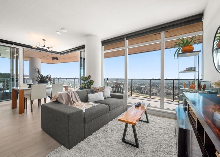 Sub-penthouse, corner suite at Concord Brentwood Hillside East with stunning, unobstructed 270° views—from the mountains and Indian Arm, to Mt. Baker, Metrotown, and the Gulf Islands. This south-facing 2 bedroom, 2 bathroom home offers 1,059 sqft of modern living and an incredible 638 sqft of heated outdoor space. Expansive sliding doors fully open to create a seamless flow between indoors and out—perfect for entertaining or relaxing with your morning coffee or evening glass of wine. Sophisticated design, quality finishings, air conditioning, and a bright open layout. Exceptional amenities, 24/7 concierge, and just steps to Brentwood Mall and Skytrain. One parking and storage locker included. Open: Sun, Nov 2, 2-4