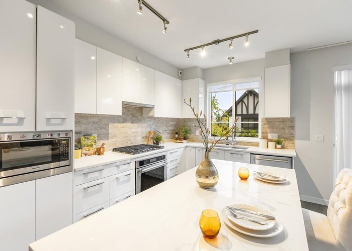 Welcome to Kentwell by Polygon—this upgraded 4 bed, 3.5 bath townhome offers 2,148 sq.ft. of functional space in a private, greenbelt-backed pocket of Burke Mountain. Features include custom built-ins, a reconfigured kitchen with pull-out drawers, upgraded LED lighting, and elegant window coverings. The double side-by-side garage is fully finished with slat walls, rafter storage, built-in cabinetry, EV charger, and second fridge. Enjoy a mature backyard garden and great privacy. Steps to future Burke Village amenities, parks, and top schools including Leigh Elementary and Burke Mountain Middle/Secondary (opening 2026). Easy access to transit, Coquitlam Centre, and SkyTrain.