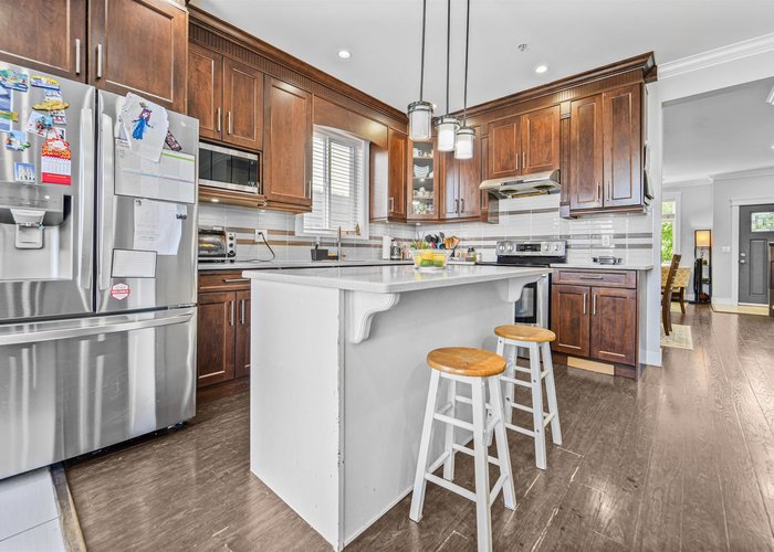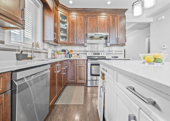 This stunning 5 bed, 4 bath corner unit row home offers the space, style, and convenience you''ve been looking for — with no strata fees! Enjoy a functional layout with a 2-bedroom basement suite, ideal as a mortgage helper or extended family living. With 3 dedicated parking spaces, there’s room for everyone. Located in an amazing family-friendly neighborhood, just minutes from Highway 1, top-rated schools, and all your shopping needs, this is the ideal blend of comfort and accessibility. Don’t miss this rare opportunity!