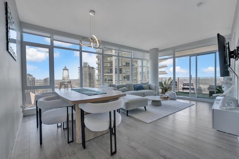 Welcome to Escala, built by reputable Leadingham McCallister. This is southeast AIR CONDITIONED home features 9'' ceilings with expansive windows and an open concept, layout to maximize natural light and city views. Beautifully finished, including laminate flooring, Cesarstone countertops, & stainless steel appliances with gas cooktop. Enjoy 15,000 ft.² of resort style amenities that include indoor pool/hot tub, sauna steam room, gym/yoga studio, 2 hotel style guest suites, & much more. EV charging stalls available. Brentwood mall and numerous restaurants, grocery stores, and every day essentials all within walking distance. Gilmore skytrain station 5 min walk from home. Kitchener elementary catchment (six min walk) 1 parking & 1 storage, Balance of 2-5-10 Warranty.