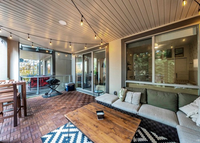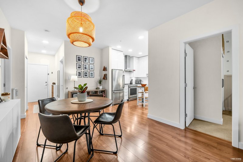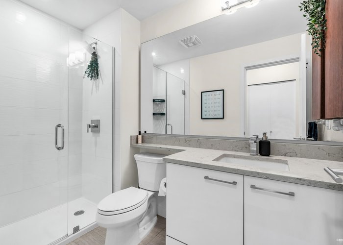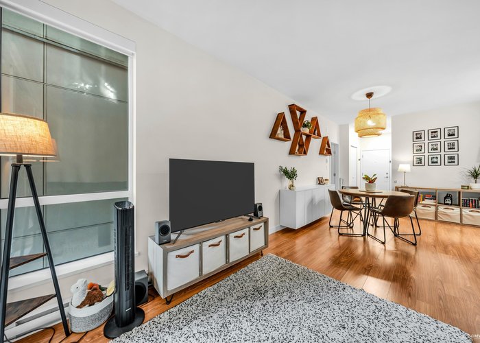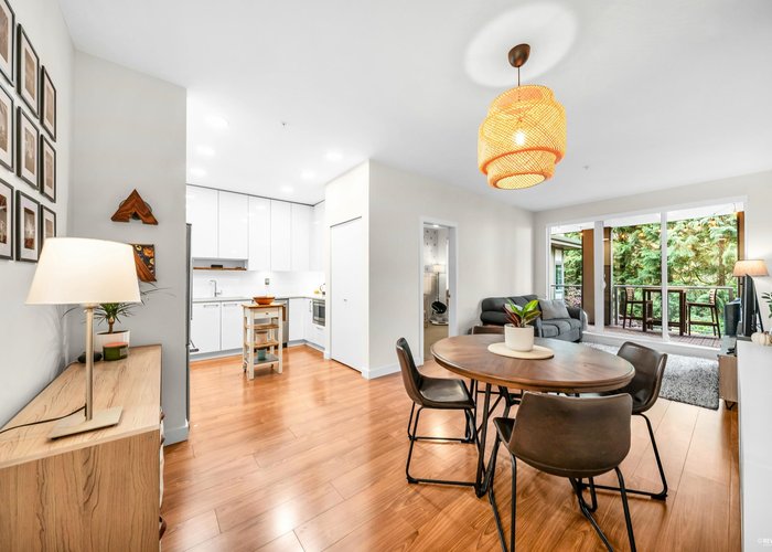 Welcome to "Seasons". This pristine 2-bedroom, 2-bathroom home feels like its brand new & features the best floorplan a 2 bedroom can have & all while in a great location! The stylish kitchen is equipped with soft-close cabinetry, sleek quartz countertops & premium KitchenAid stainless steel appliances. Enjoy a spacious west-facing patio—perfect for relaxing or entertaining. Residents benefit from fantastic amenities, including a fitness centre, children’s play area, community garden & secure parcel delivery. Comes complete with parking & a storage locker. All this just steps from Holdom SkyTrain, The Amazing Brentwood, shops & restaurants. A beautiful blend of comfort, location & value—book your showing today!
