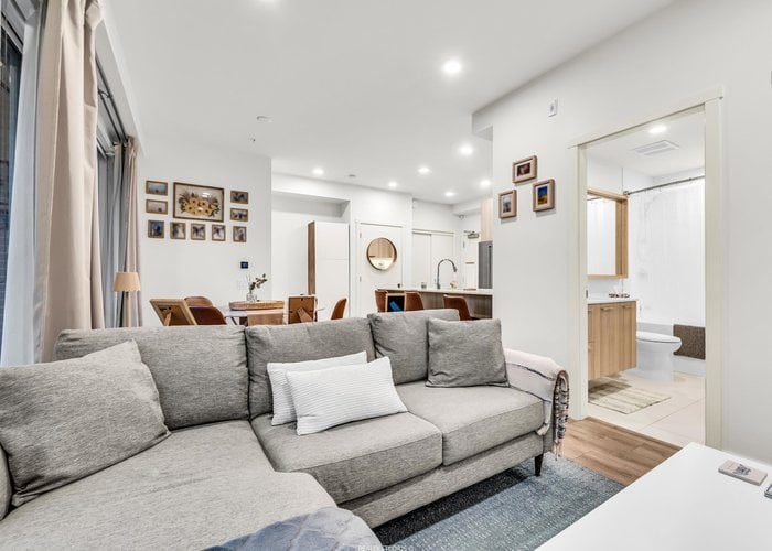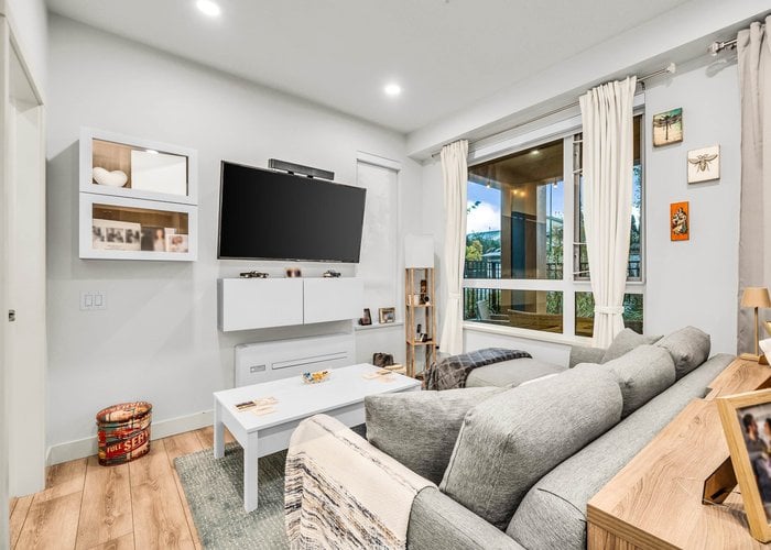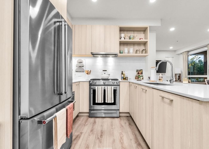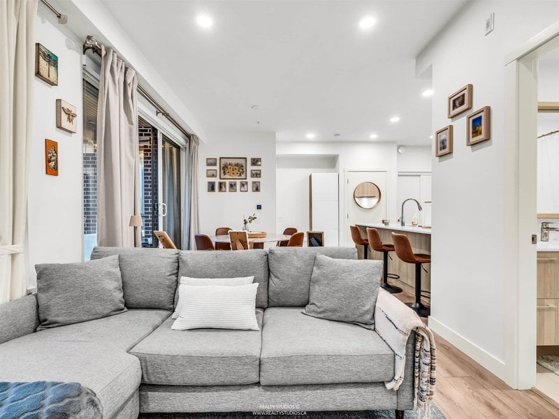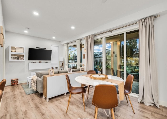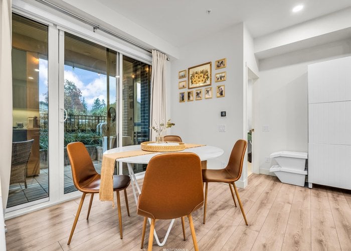 2 PARKING STALLS, Air conditioning & Storage locker! Welcome to THE OAKS, highly sought-after development offering modern design, comfort, & unbeatable convenience. This beautifully appointed 2-bedroom, 2-bathroom ground-floor unit features a spacious open-concept layout w/stainless steel appliances, a gas range, & a bright, contemporary kitchen ideal for both everyday living & entertaining. Step outside to private patio w/easy access to courtyards, perfect for relaxing or hosting guests. Enjoy an impressive collection of amenities including a fitness centre, games room, theatre room, party room, co-working space, and a children’s playground. Conveniently located close to SkyTrain, shopping, restaurants, schools, & parks, This combines modern living with easy access to everything you need.