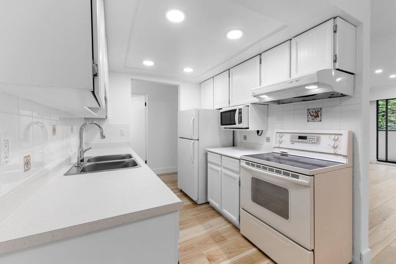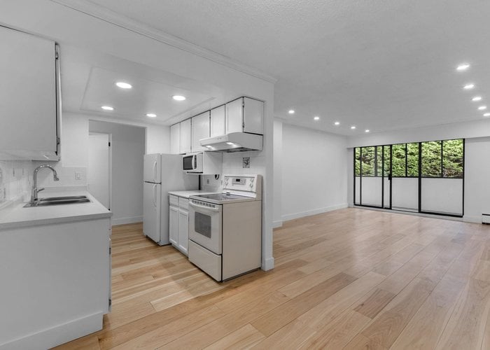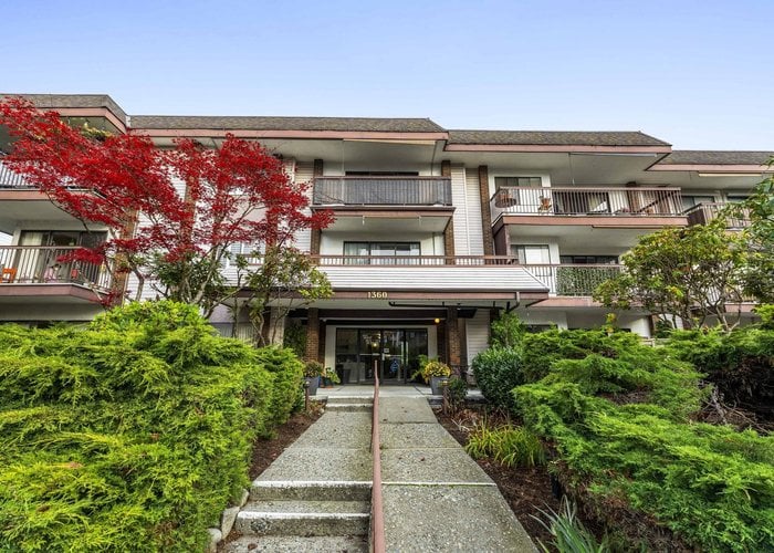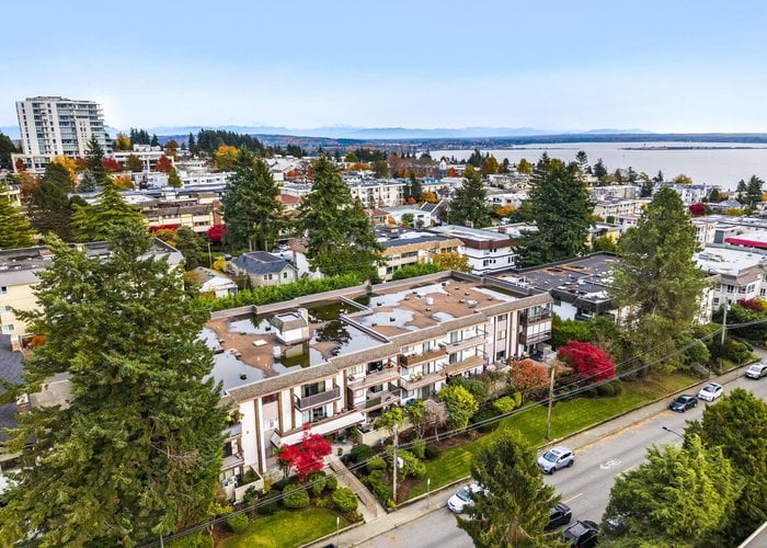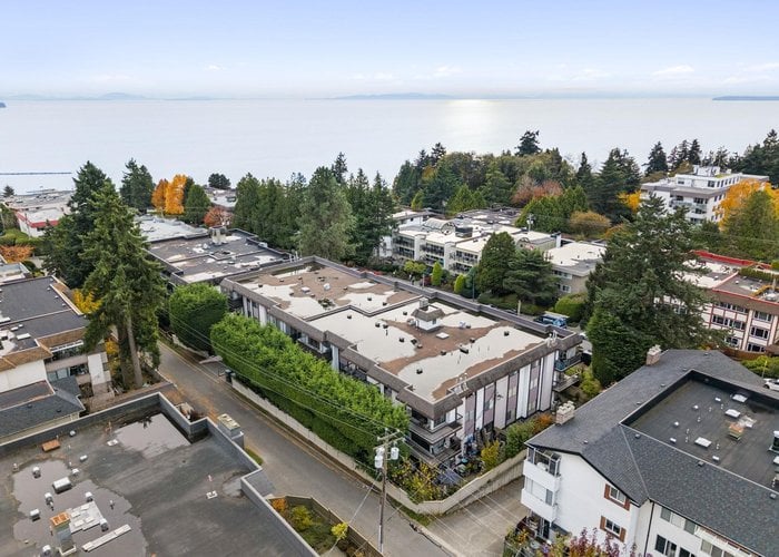 Welcome to West Winds, a well-maintained and highly sought after 55+ community located in the heart of White Rock! 9-minute walk down Martin Street to the White Rock Pier! Enjoy contemporary finishes with updated lighting, new carpets and freshly painted! Bathrooms have been refreshed with new cabinets, toilets and flooring! The entire unit boasts ALMOST NEW hardwood flooring A king sized primary bedroom, ample storage and spacious living - LAUNDRY FEE INCLUDED! Situated on the quiet side of the building, this bright, airy home includes an enclosed sunny balcony! Just steps from transit, shops, restaurants, and a quick walk to the iconic White Rock beach and pier, this is the ideal place to call home!