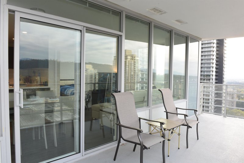 Brand new condition. Fabulous 270 degree West-North-East Sunset, mountain & city view, 140sqft covered balcony. Bright, quiet, peaceful with practical open floor plan. High end stainless steel appliances. In-suite washer/dryer. Truck length parking spot with bicycle rack on wall. 6 ft by 4 ft storage locker. On site concierge services. Walking distance to Lougheed Town Centre, Evergreen & Millenium lines stations, banks, restaurants, and all kinds of grocery and shopping. Strata facilities incl yoga & fitness room, party room, games room, super theatre room, meeting room, guest room. And also, outdoor landscaped courtyard, social area & BBQ. All measurements are approximate. Quick possession is possible. Ready to move in.