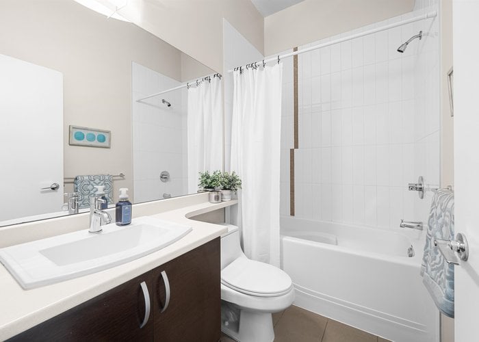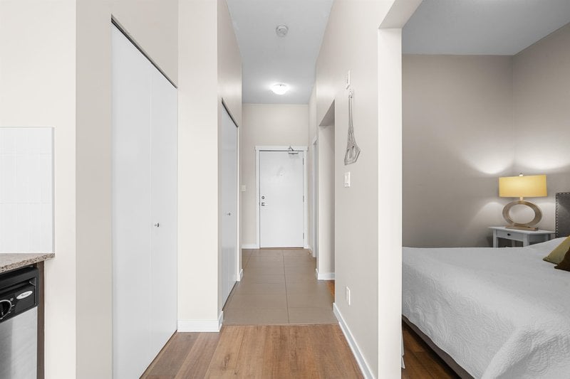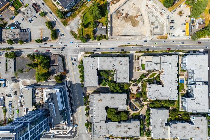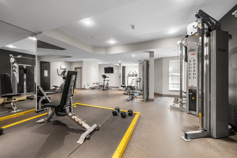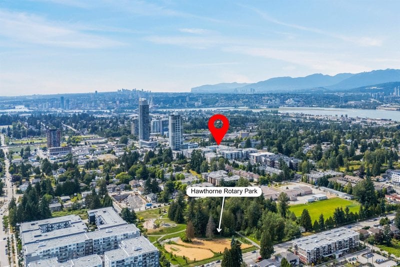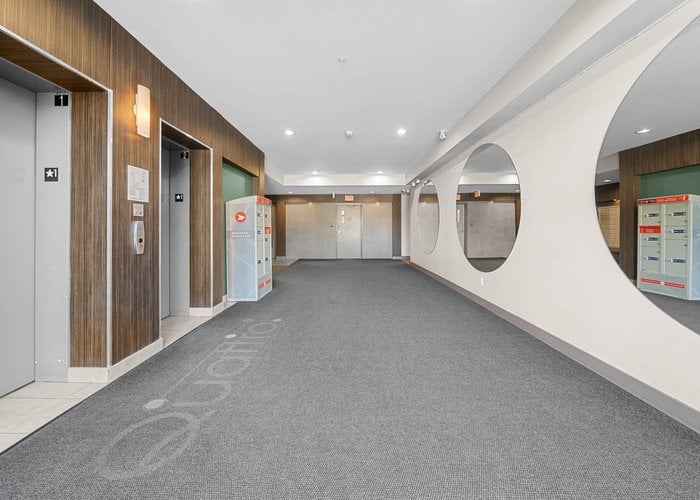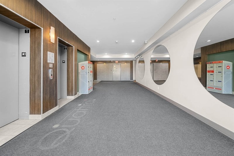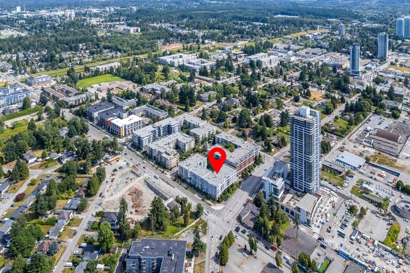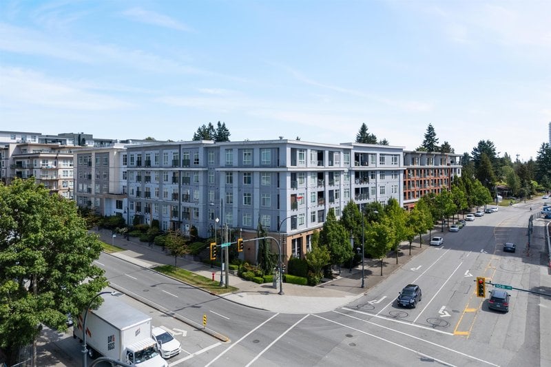 Top Floor 1-Bedroom with soaring 10ft ceilings & fresh upgrades! South-facing unit with floor-to-ceiling windows that fill the space with tonnes of natural light. Freshly updated with new vinyl plank flooring and paint throughout. Enjoy a peaceful view of the quiet courtyard from your living space. Amenities include a gym, courtyard with a kids'' play area, and bike storage. 1 parking & 1 locker, EV -ready building & pet-friendly. Prime location with local businesses right at your doorstep. Just a 9-minute walk to Gateway SkyTrain Station for fast access to SFU, Central City Mall, parks, and more!