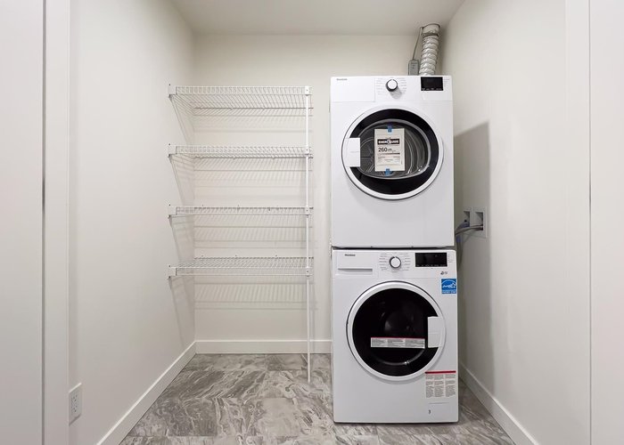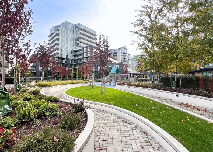"One Park" in the heart of Richmond. The apartment offers a serene yet conveniently located setting, super convenient shopping & transportation. 8''6" ceilings; open kitchen featuring Miele gas cooktop, electric oven, panelled 30" fridge, & DW, Panasonic microwave, quartz countertops & 21sf walk-in pantry w/Blomberg W/D; laminate & tile flrs thru-out. Enjoy your views of north shore mtns, city & Mt Baker. 1 EV-ready parking + 1 bike locker. Extensive amenities: gym; sauna & steam rms; yoga, dance & table tennis rms; rec rm w/pool table; lounge w/chef''s kitch; sound-proof music rms; + 31,000sf terrace w/garden plots, BBQ area, playgrnd & water feature. Pets & rentals friendly. Open House: Sun December 7, 2-4PM