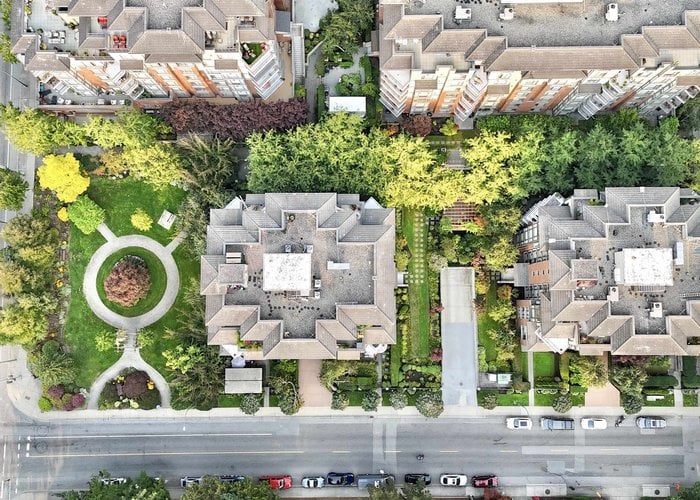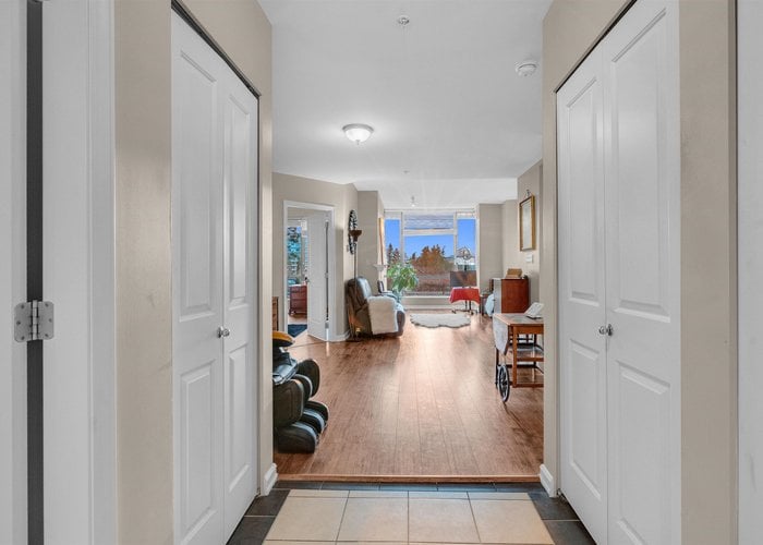 Welcome to Sussex House, a beautifully crafted CONCRETE building in uptown White Rock. This charming CORNER unit with OCEAN VIEWS offers 1,140 sq ft of inviting living space, featuring 2 bedrooms, 8 ft ceilings, and a bright kitchen area. This layout includes 2 full bathrooms, and a dining area. Relax by the natural gas fireplace in the living room, or enjoy cooking in the kitchen w/ GRANITE countertops, a breakfast bar, and an eating area surrounded by oversized windows. Step out onto your covered deck to take in ocean views, rain or shine. Amazing location - explore the nearby shops, restaurants, and parks all within walking distance. OPEN HOUSE SATURDAYS, FROM 2-4 PM (November 29, December 13 & 20)