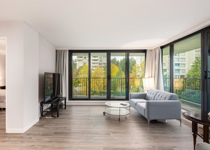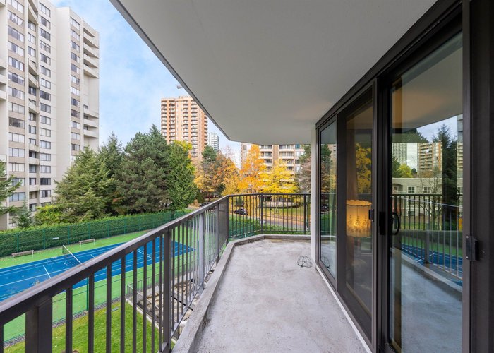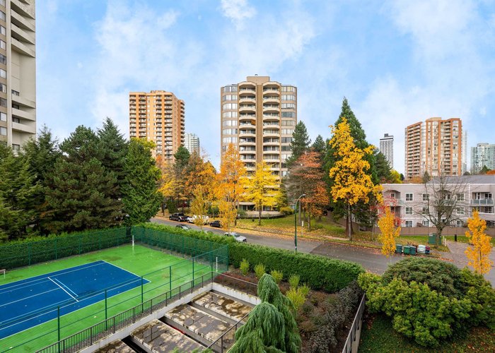 NW corner unit with view from wrap around balcony. 402-6455 Willingdon is a very spacious 2 bedroom 1 bathroom condo in the very vibrant Metrotown area. Close to schools, restaurants, shopping, transit and so much more. Boasting over 928 sq ft of open concept living with insuite laundry. No wasted space. The building has tons of upgrades. Rentals allowed. Amenities include gym, meeting area, library, shared tennis courts and so much more.Low strata fees in the well maintained building.