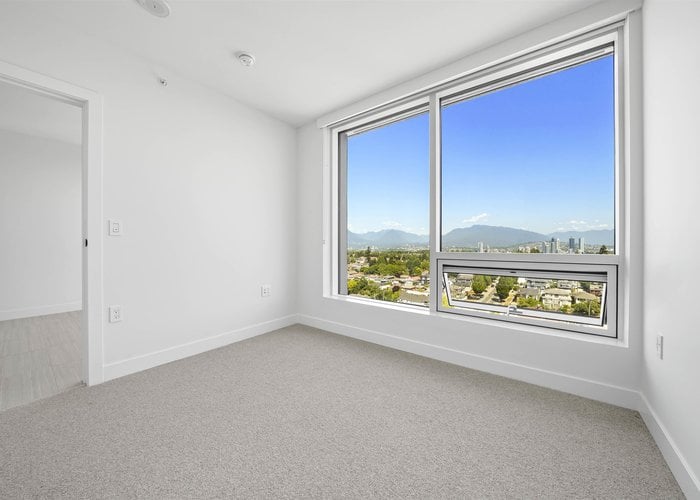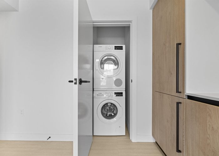 NO PARKING!!! Welcome to JOYCE by WESTBANK. This 1 bed + den unit include a bike locker is located at Joyce-Collingwood Skytrain station, steps away from the Kingsway shops, restaurants, and transportation. Luxury interior design includes an open floorplan, European Miele & Bosch appliances, and Kohler bathroom fixtures, tankless toilet. Breathtaking mountain and city views in your bedroom. The Garden rooftop features 360-degree views all around, with a fire pit, BBQ w kitchen, lounge furniture, harvest/potting table, garden planters, vertical climbing wall and a colorful rubberized open area for kids, a well-equipped fitness center, social lounge, study rooms, and music rooms.