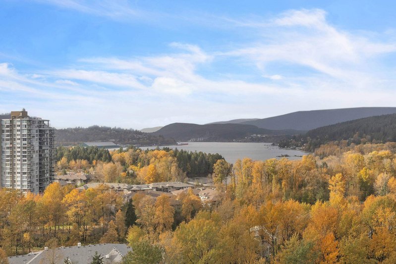 AMAZING VIEWS!!! A corner unit in Port Moody’s most desirable neighbourhood! This 2 bed 2 bath home features 9 ft floor to ceiling windows with views of the inlet, mountains and glowing sunsets. The layout features bedrooms on opposite sides, open concept living/dining and kitchen with granite countertops and gas range. Enjoy resort-style amenities including indoor pool, hot tub, steam room, sauna, gym, squash court, theatre, party lounge w pool table and guest suite. With a 92 Walk Score, you''re steps from groceries, restaurants, cafes, trails, the Sky Train and West Coast Express. Short walk to Rocky Point Park, Brewer’s Row, and Port Moody Rec Centre. 1 cat and/or 1 dog allowed (dog less than 16” & under 35 lbs), 1 Parking. This unit is not to be missed!! Open House Nov 16th 2 to 4