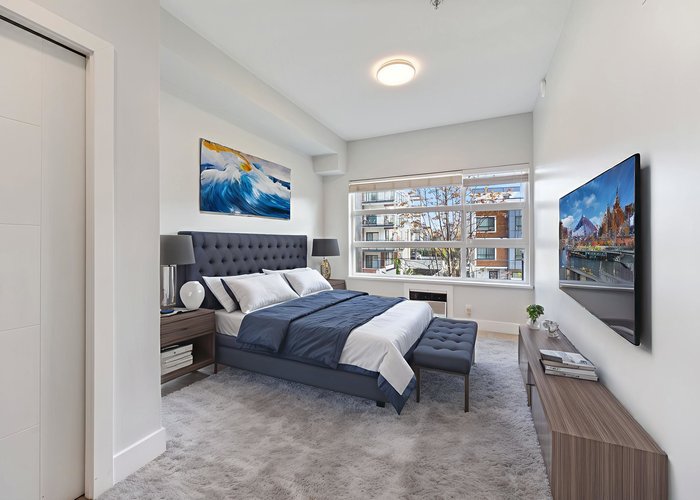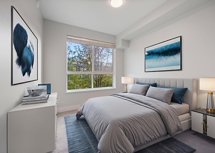 Welcome to The Wesley at Brydon Creek! This stunning 2-bedroom, 2-bathroom home features a bright, open-concept layout with bedrooms thoughtfully positioned on opposite sides for maximum privacy. Enjoy high-end finishes throughout, including granite countertops, stainless steel appliances, 9-foot ceilings, and air conditioning in the primary suite. Includes 1 parking stall and 1 storage locker. Perfectly situated within walking distance to Brydon Park and Baldi Creek Trail, and just minutes from Newlands Golf & Country Club, Willowbrook Mall, Costco, Walmart, T&T, Canadian Tire, Home Depot, schools, restaurants and more. Commuting is easy with nearby public transit, highway access, and the future SkyTrain line coming soon. Call today to book your private showing! Open House Sat Nov 22