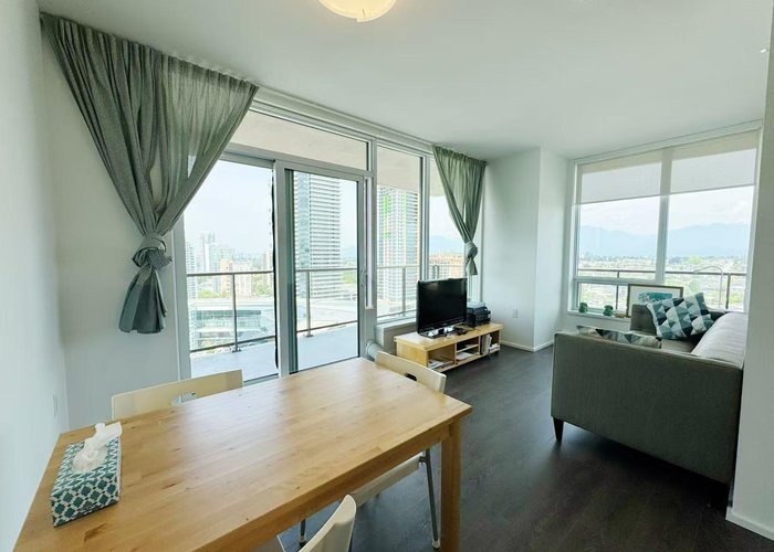 Welcome to AMAZING BRENTWOOD – TOWER 3, a signature home by SHAPE Properties in the vibrant heart of Brentwood Town Centre. This stunning 2 Bed + 2 Bath + Den high-rise residence offers 926 SF of thoughtfully designed living space, featuring an open-concept layout flooded with natural light, a sleek gourmet kitchen with premium Bosch appliances, quartz countertops, and custom cabinetry. Enjoy breathtaking panoramic views of Downtown Vancouver and the North Shore Mountains from the northwest-facing wrap-around balcony — perfect for relaxing or entertaining. The spacious primary bedroom includes a spa-inspired ensuite, while a bonus laundry room adds everyday convenience. This home includes 1 parking stall with 1 storage. VR: https://realsee.ai/KlNNkd3Z.