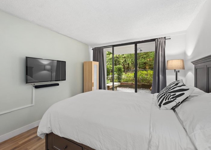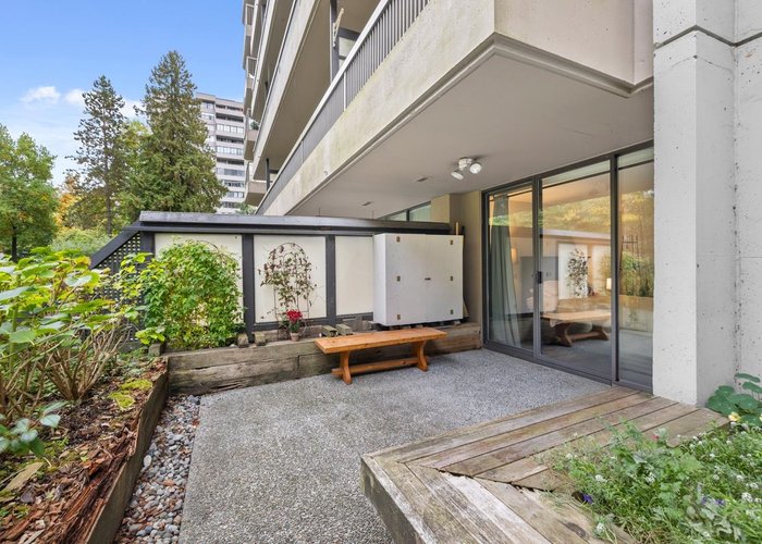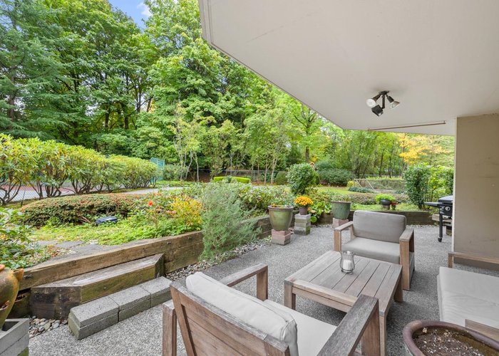 Tranquil living, embraced by nature! This pristine corner, garden suite occupies the premiere location in the building, surrounded by lush greenery in a vibrant setting. The 800+ sf wrap-around balcony feels like your own private park, perfect for morning coffee, summer BBQs or a bit of planting in the sunshine. Floor-to-ceiling windows bring the outside in, creating a seamless connection to the surroundings. Inside, the spacious layout offers flexibility for a home office or an expanded dining area, while both bedrooms are generously sized for comfort & relaxation. Anola (by Bosa), a well cared for concrete building, sits in a quiet community just steps from Brentwood Mall, SkyTrain, parks and more. Calm, comfort, and convenience come together in one exceptional retreat.