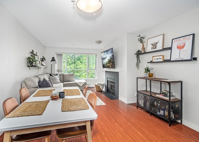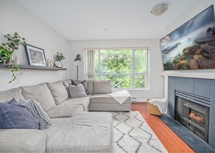 Discover this inviting 3rd-floor home situated on the quiet side of the building, offering peace and privacy. This bright and spacious 2-bedroom, 2-bathroom residence features over 1,043 square feet of well-designed living space. The cozy gas fireplace adds warmth and charm and is conveniently included in the strata fee. The generous primary bedroom boasts a large walk-in closet for added storage. Bonus: enjoy the convenience of two secure underground parking stalls located close to the elevator. Residents also have access to a well-equipped clubhouse with a large party room, updated gym equipment, and a hobby room. Ideally located with quick access to Highway 1, schools, shopping, and public transit—perfect for daily living and commuting.