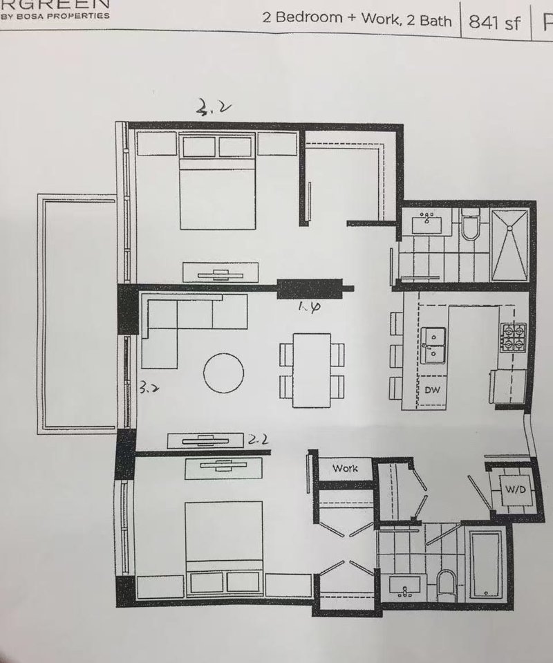 Core area in Coquitlam Center, steps away to Skytrain, shopping mall, college. Well built by Bosa. 22nd floor facing to west with good city and mountain view. The unit has very reasonable floor plan, two sized bedrooms and two full bathrooms, featured with high end appliances, gas stove. The building is taken care by a living in caretaker. Enjoy the gym, club house and other amenities. Low strata fee and well maintained. Serious seller. Need 24 hour notice for showing arrangement because it''s tenanted.