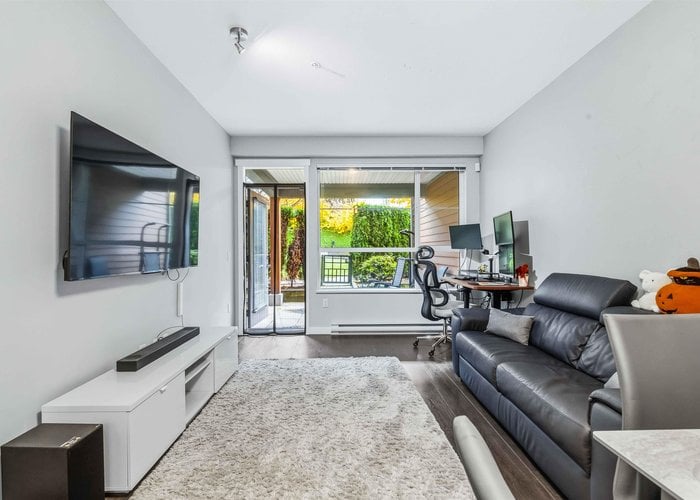 Discover contemporary comfort & exceptional convenience in this thoughtfully designed 1bed + DEN residence at Stanton House by Polygon, located in the heart of the vibrant & growing Burquitlam community. This bright, well-maintained home features an open-concept layout w/ a generous living & dining space, a sleek kitchen with s/s appliances & ample storage, & a spacious bedroom complete w/ a WIC. The versatile den is ideal for a home office, study, or additional storage. Large windows bring in abundant natural light throughout, enhancing the warm & inviting atmosphere. Enjoy access to a fully equipped fitness centre & a beautifully landscaped courtyard. School catchment: Roy Stibbs Elem, Banting Middle School & Port Moody 2ndary. OPEN HOUSE Sun Dec 7th 2-4pm "BY APPOINTMENT ONLY"