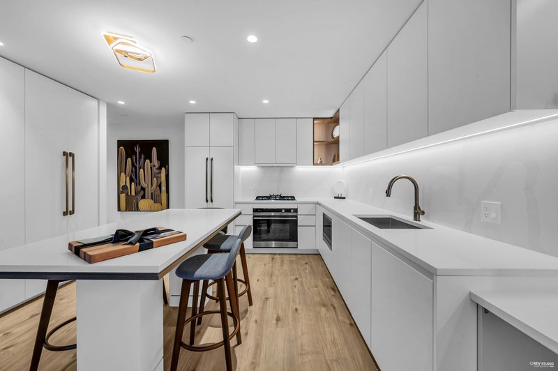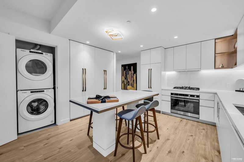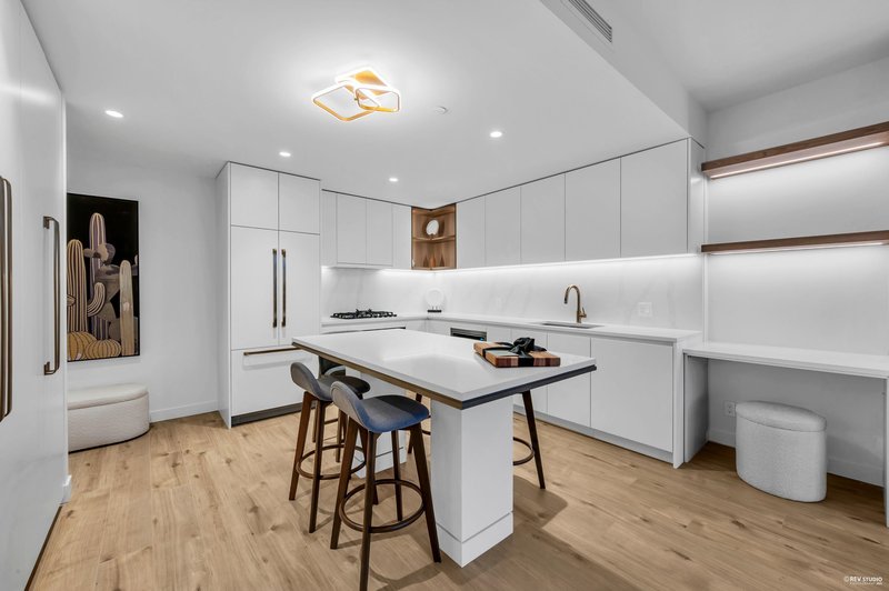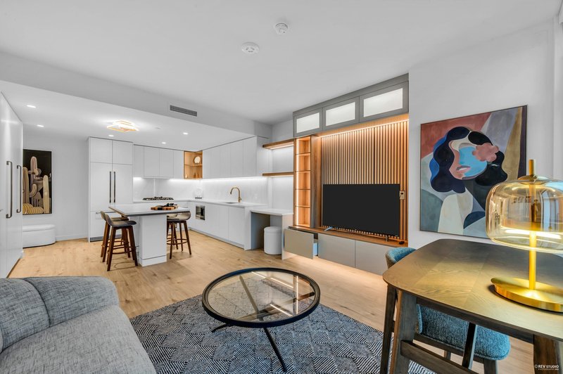 This home offers one of the best values in the building. Smith & Farrow by Boffo Developments sits in prime West Coquitlam, just steps from Burquitlam SkyTrain and close to SFU, shops, and restaurants. The north-facing one-bedroom layout provides 614 sq ft of efficient living space plus a 124 sq ft covered balcony for year-round use. Highlights include air conditioning, 9-foot ceilings, expansive windows, roller shades, and wide European-style flooring. The contemporary kitchen is equipped with 30” Fisher & Paykel appliances, a Bosch dishwasher, and an optional custom dining or bar-height table. Residents enjoy impressive amenities such as an outdoor pool, hot tub, rooftop lounge, fitness centre, yoga room, and guest suites. One parking stall and storage locker are included. OH: 12/6 2-4pm