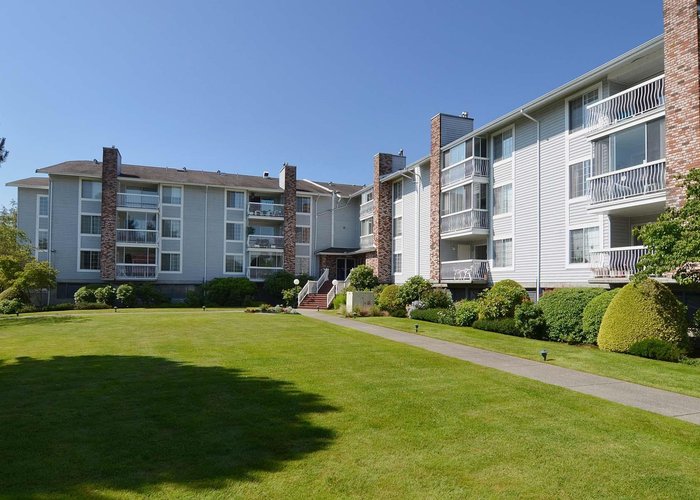 HERITAGE MANOR - Welcome Home! Bright, spacious 2 bedroom, 2 full bathroom condo in Langley City. Open concept layout that flows with day to day living. Large living room with gas fireplace opens up to park views from lovely patio - perfect for morning coffee or afternoon tea. Dining flows from kitchen which features new stove (2025) and new refrigerator (2025). Newer laminate flooring and paint throughout. Generously sized bedrooms are on opposite sides of the home for privacy and comfort. Ample storage areas off of deck and in laundry room. New hot water tank (2024). Close to shops, restaurants, parks and transit. 55+ community. Do not miss out!