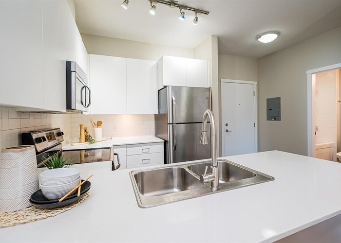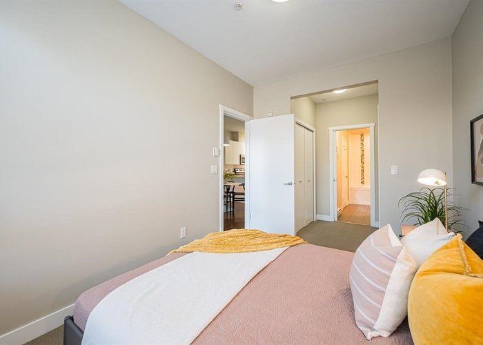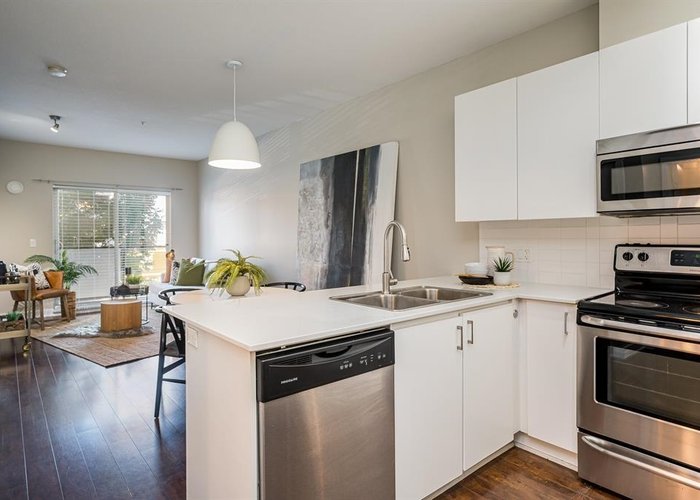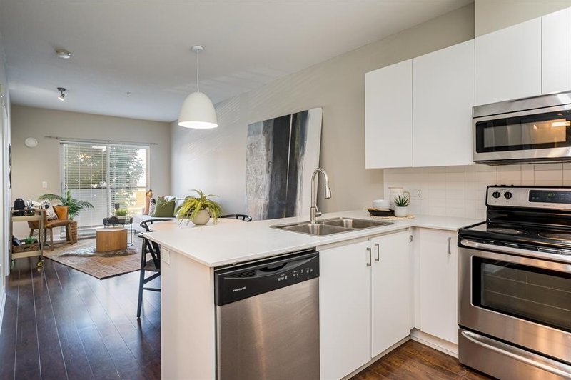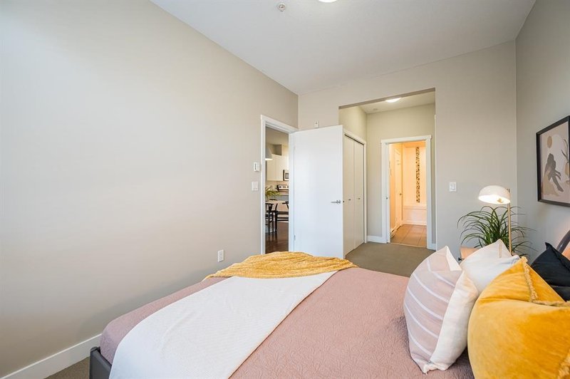 Calling all investors and first time home buyers! Located in the heart of charming Langley City, this 1 bed 1 bath home offers over 600 sq.ft of open concept interior living space. Gourmet kitchen featuring quartz countertops, s/s appliances, laminate flooring, large primary bedroom and in-suite laundry. 14 year old building, well maintained with brand new plumbing and updated elevator. Amenities include a gym and common area with entertainment center and kitchen. This unit comes with 1 secure parking spot and 1 storage locker. Conveniently located just steps away from Douglas Park, Langley City Hall, Langley Shopping Mall, Cascades Casino and a variety of restaurants. Call today!