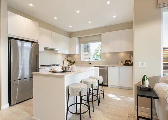 Introducing Halo by Polygon, perfectly nestled between scenic beaches and dynamic city life. With 826 sq.ft. of living space, this 2 bedroom home is ideal for modern living. The open concept kitchen, living and dining area features a large central island, perfect for entertaining. The primary bedroom includes a spacious walk-in closet and a flexible space which can be used as a home office. Relax on your private deck, and enjoy year-round comfort with AC included. Completion is estimated for Summer 2026. Visit our sales office at 15231 20 Ave in South Surrey, open by appointment.