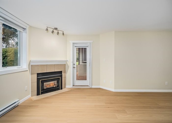 MISSION WOODS – a serene retreat surrounded by nature! This spacious, renovated SW-facing 2 bed, 2 bath home lives like a townhome and offers peace and privacy. Enjoy brand-new laminate flooring, lighting, fresh paint, and all-new appliances. The open living/dining area features a charming bay window and a large covered patio overlooking lush greenery and the walking trail. The primary bedroom includes a walk-through closet and full ensuite. Cozy gas fireplace (gas included in fees), in-suite laundry, 1 parking and storage. Rainscreened building with updated windows and balconies, pet friendly and fantastic amenities: gym, games room, library, workshop, infrared sauna and EV. Walk to SkyTrain, shopping, parks, and schools. Quick possession possible! Call to view. Open Sun Dec 7th 2-4pm.
