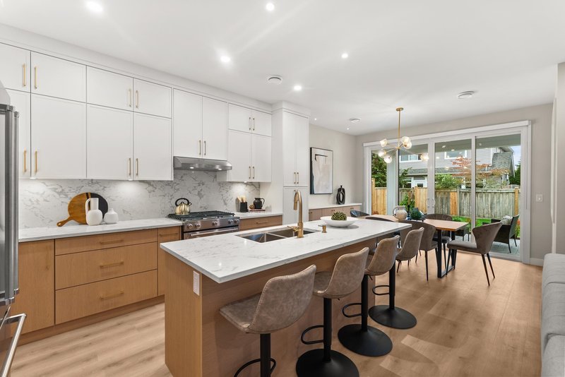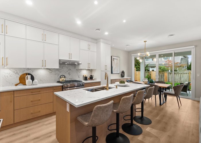 Don’t miss this 100% complete and furnished showhome by Pacific Coastal Homes! An exceptional 2,442 SF residence offering 4 bedrooms, 5 bathrooms, and 2 kitchens, designed for spacious and flexible family living. The possibilities are endless, as the main floor includes a separate entrance to a 1-bedroom suite with its own laundry! Enjoy seamless indoor-outdoor living space that flows from the living room to the private, covered patio and large, fenced southern backyard—perfect for entertaining. Thoughtful features include a Heat Pump for year-round comfort, EV Ready double garage, and the security of 2/5/10 New Home Warranty. Walking distance to great catchment schools, Westwind, Homma (French) & McMath Secondary. Steps to the railway greenbelt and new Steveston park & Community Centre.