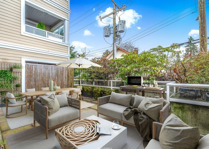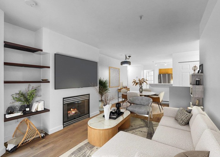 This is Kitsilano living at its best. Located at The Breeze by Bosa on the quiet side of the building, this bright and spacious open-concept home features new flooring, a cozy gas fireplace, expansive windows, and a versatile solarium that adds warmth and flexibility to the space. Step outside to an oversized patio, perfect for slow mornings or relaxed evenings. The home also offers in-suite laundry, a den or additional storage, and a pet-friendly setting. Ideally situated North of 4th Avenue, you’re just steps from cafés, groceries, yoga studios, and some of Kitsilano’s best dining, with Jericho Beach only a five-minute stroll away. A home that feels effortless, connected, and truly livable.