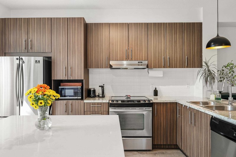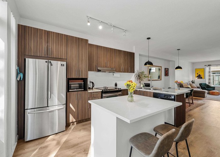 Welcome home at Harvest at Westerleigh by Polygon! This 3bdrm, 2bthrm townhome blends modern comfort w/ family-friendly living in 1 of the area’s most desirable communities. Built by renowned local builder Polygon, the home is part of a master-planned complex featuring award-winning amenities—including an outdoor swimming pool, lounge, hockey rink, theatre room, & more. Inside, you’ll love the open-concept main floor, highlighted by laminate flooring & thoughtful upgrades. A custom fireplace surround creates a warm focal point in the living area, while the full kitchen island & added shelving and cabinetry offer style & extra storage. Upstairs, find 3 generously sized bdrms, perfect for families or guests. Step outside to a private backyard.