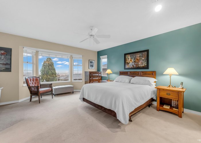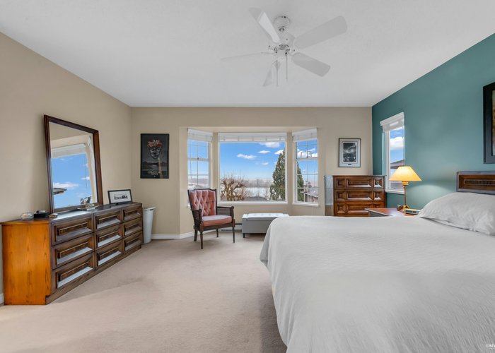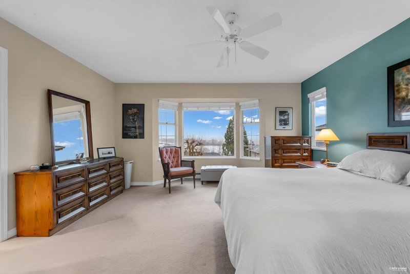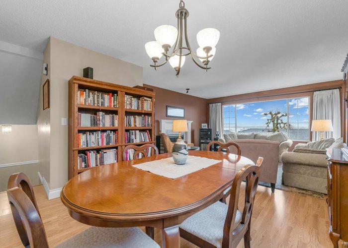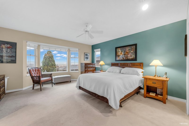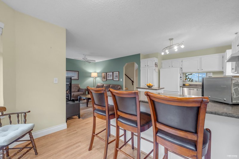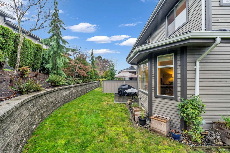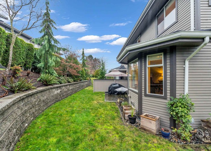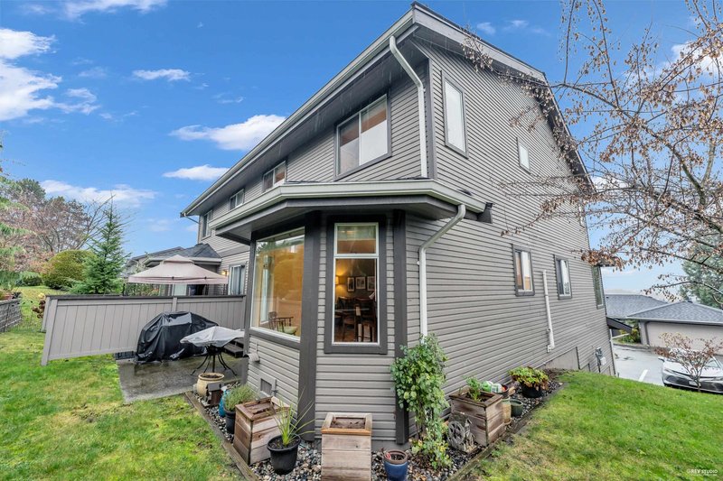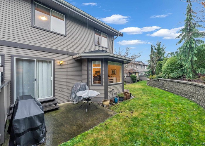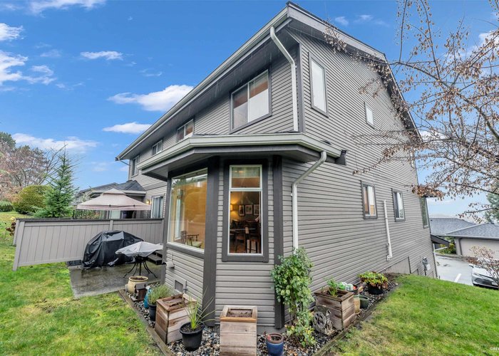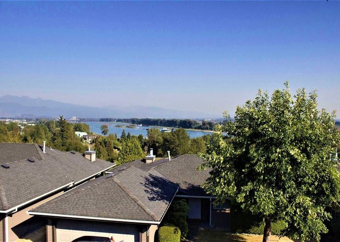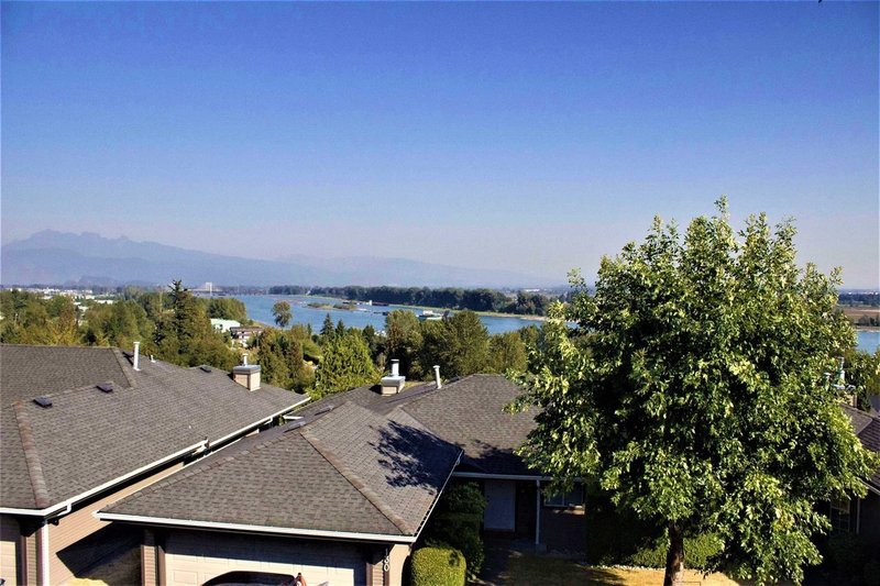 Amazing END UNIT with over 2,100 sq ft at The Uplands with STUNNING 180 degree views of the Fraser River and Golden Ears. Features a super layout w/open style kitchen, eating area plus a family room all overlooking the private patio w/mature gardens. The spacious living/dining room has large windows to take in the gorgeous views. The top floor has 3 generous sized bdrms incl a huge primary suite with unobstructed views. Bsmt w/ finished rec room, laundry, & tons of storage. Excellent complex w/roofs, exterior paint all done in the last 3 years. The Uplands is a proactive, well-managed, family-oriented community, situated close to excellent schools, parks, transit & major commuter routes, everything you need for everyday convenience and family living + Hwy 1 & Lougheed Hwy for easy travel.