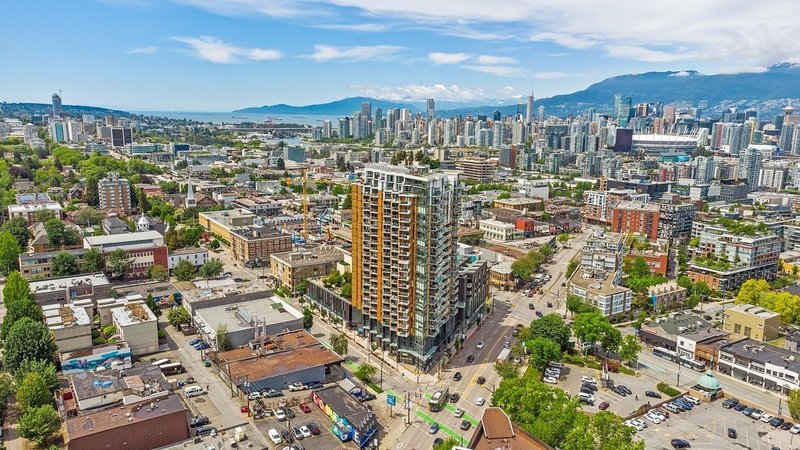 WELCOME TO THE INDEPENDENT - this immaculately maintained 2 bedroom + den + flex residence at The Independent on Main. This air-conditioned 808 sq ft residence offers stunning mountain + city views w/partial water outlooks. The thoughtfully designed kitchen features: Italian cabinetry, Quartz countertops, and SS appliances, including a Porter & Charles induction cooktop. Enjoy indoor-outdoor living from your private 80 sq ft patio overlooking the vibrant Main Street streetscape. Excellent building amenities include a fully equipped gym, party room w/ bbq area, workshop, guest suite ($120/night), meeting room + more. Extremely convenient/walkable location with shopping, transit, dining, and restaurants & upcoming Main/Broadway SKYTRAIN STN. | Complete with 1 Parking | OH: Sun Jan 18, 1-3pm.