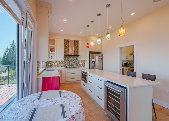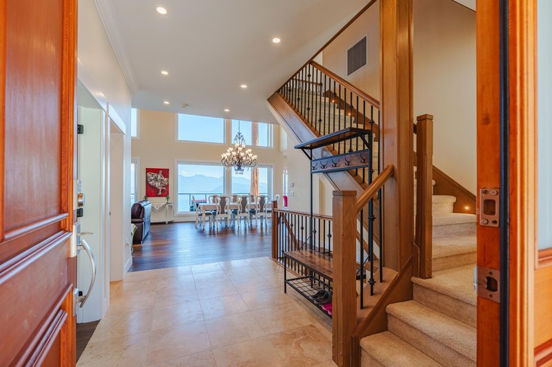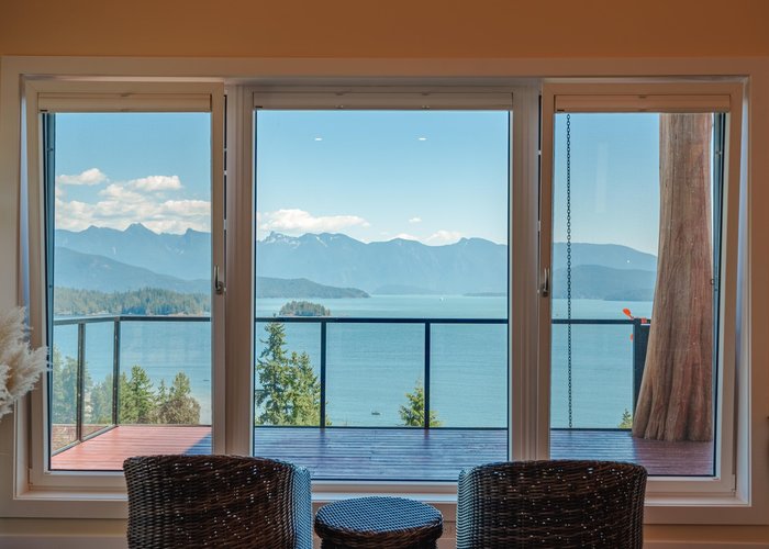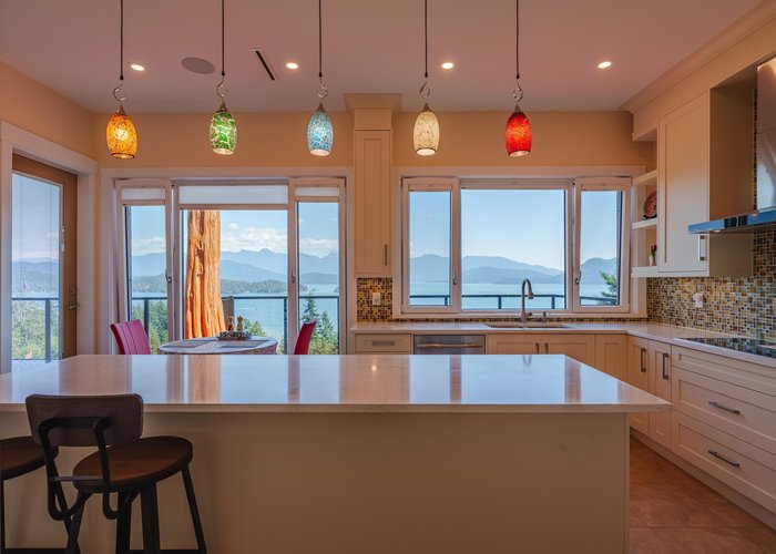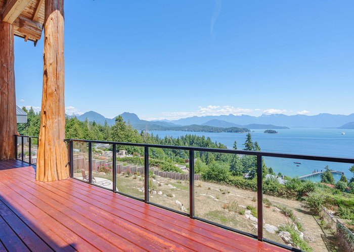 Live the ultimate coastal lifestyle without compromising convenience in this stunning 7-bed, 6-bath 4,426 square foot West Coast Contemporary residence. Situated on a .49-acre lot with panoramic views of the ocean and North Shore mountains, this spacious home is just 5 minutes from the ferry terminal and only an hour from downtown Vancouver. Custom built in 2018, the home showcases soaring windows, unobstruced views, exposed timbers, & a bright open-concept layout that flows onto a large view deck—perfect for entertaining. Enjoy a chef’s kitchen with a separate wok kitchen, wine cooler, and custom lighting. A private 3-bedroom in-law suite offers space for guests or rental income. Moments from beaches, shops, and cafes—this is Gibsons living at its finest! Price well below assessed value!