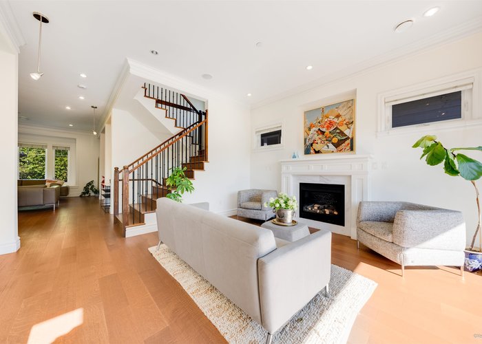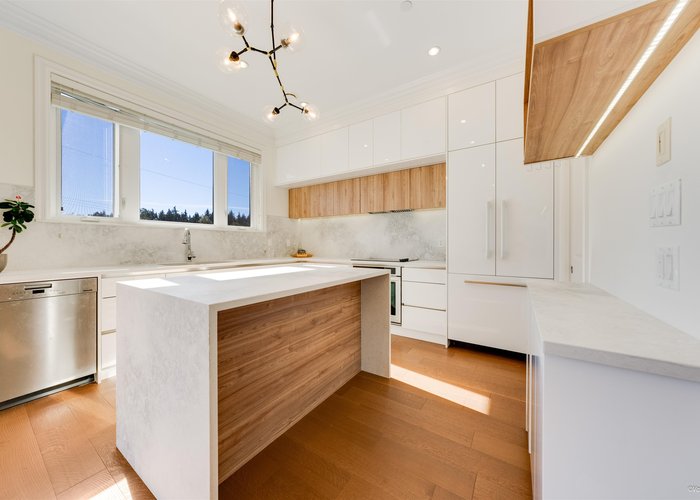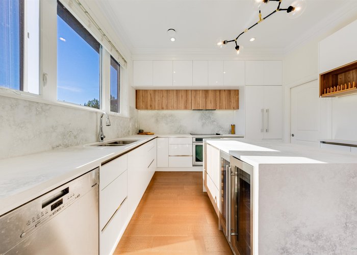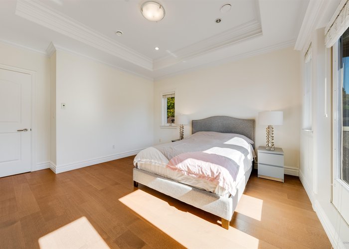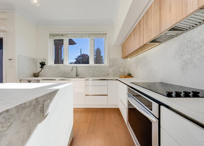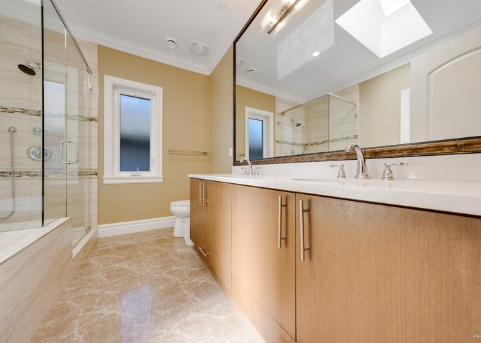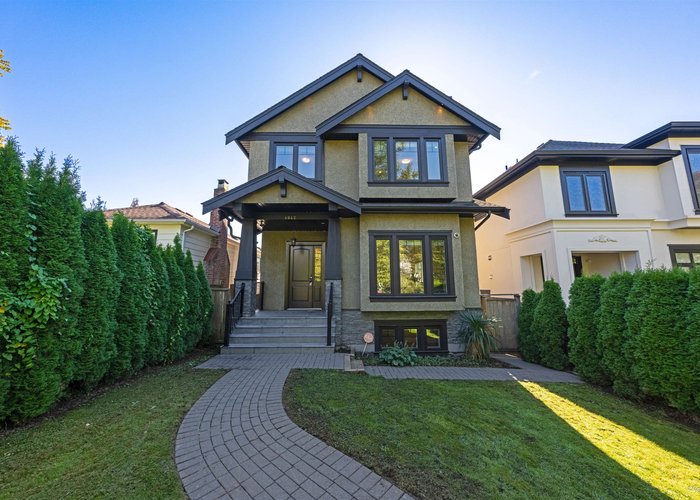 This elegant home sits on the quiet south side of 20 Avenue in prestigious West Dunbar. It is within walking distance to Lord Byng Secondary and Queen Elizabeth Elementary, just a few minutes from St. George’s School and the UBC campus. Thoughtfully designed with fine details, it offers ten foot ceilings, radiant heating, and air conditioning. The upper floor has three ensuite bedrooms, including a luxurious primary suite with a balcony and a large walk in closet. The main level features formal living and dining areas, a bright family room, a stylish kitchen, and a wok kitchen. The lower level includes a theatre and recreation area plus a self contained one bedroom suite that provides great rental income.